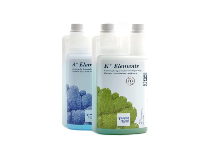K+ ELEMENTS a A- ELEMENTS sú šetrné prípravky, ktoré podporujú zdravý rast v útesovom akváriu a brilantné sfarbenie koralov doplňovaním všetkých základných aniónov a katiónov spotrebovaných živočíchmi.